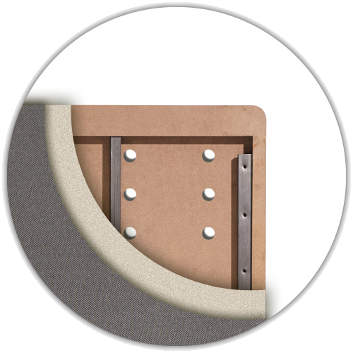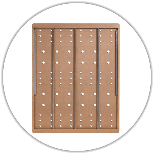 Tapa reforzada con barras de hierro y totalmente perforada para una mejor transpiración, evitando hundimientos por humedad en la tapa.